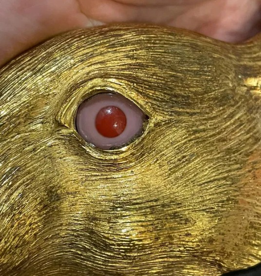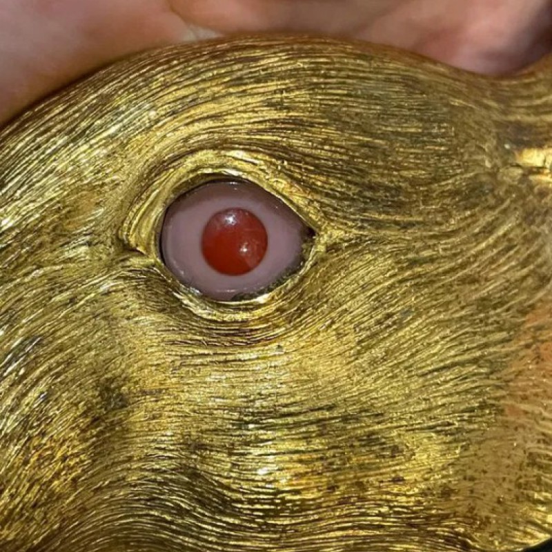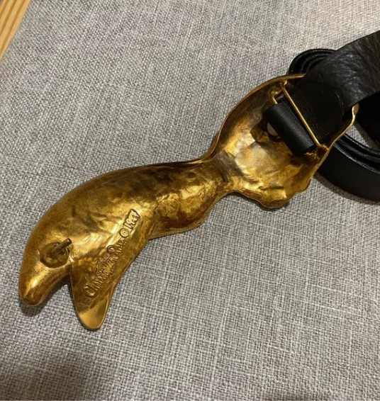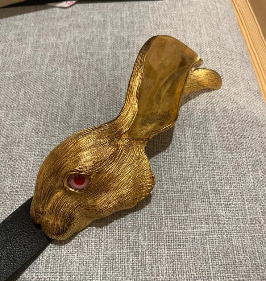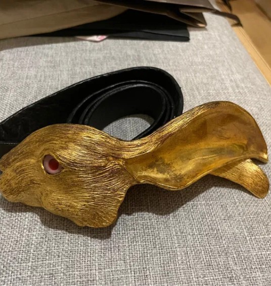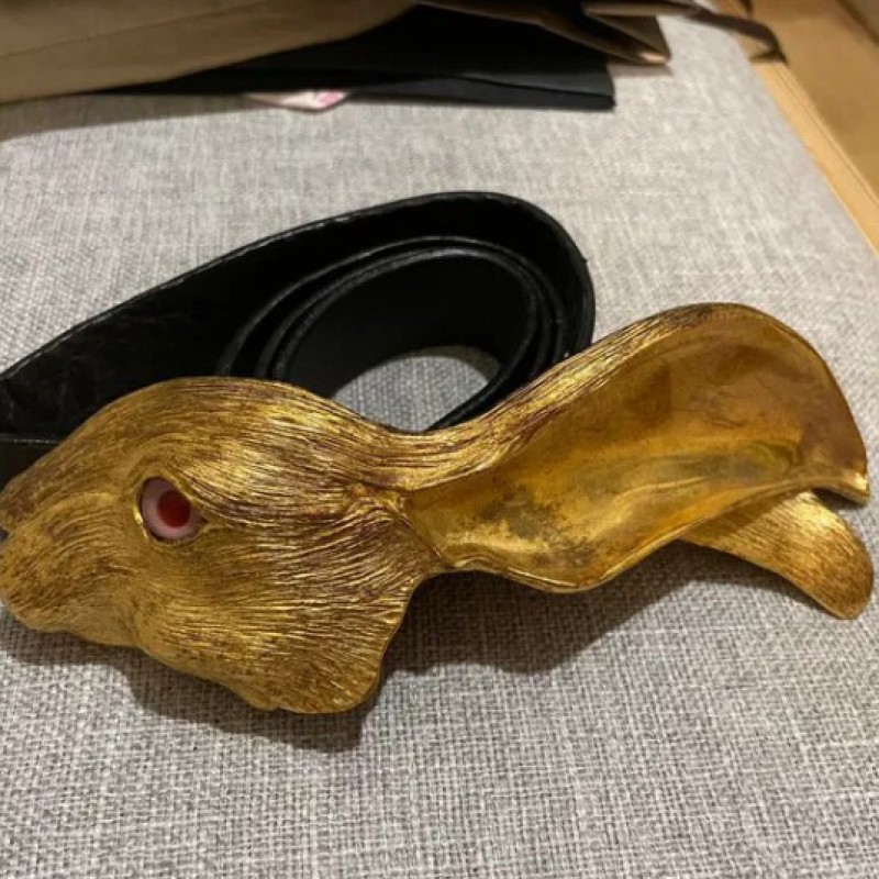 Массивная пряжка для ремня с кроликом из 24-каратного золота от Christopher Ross.