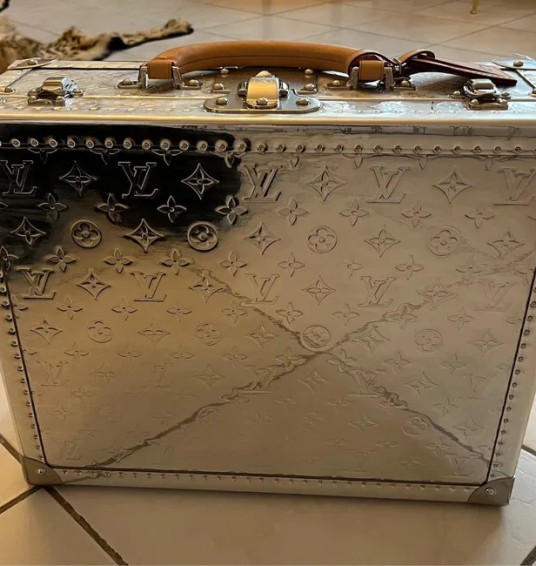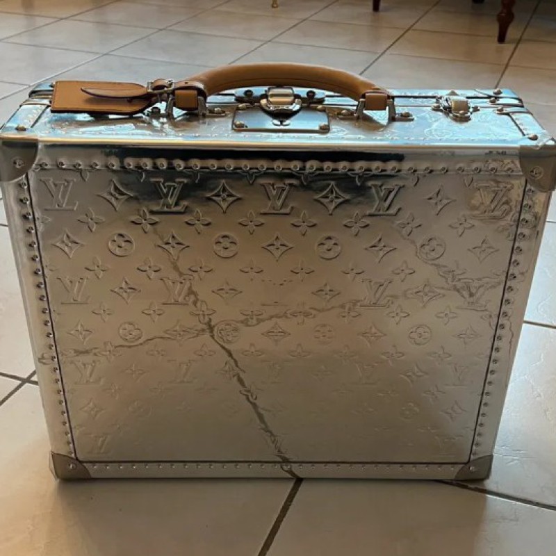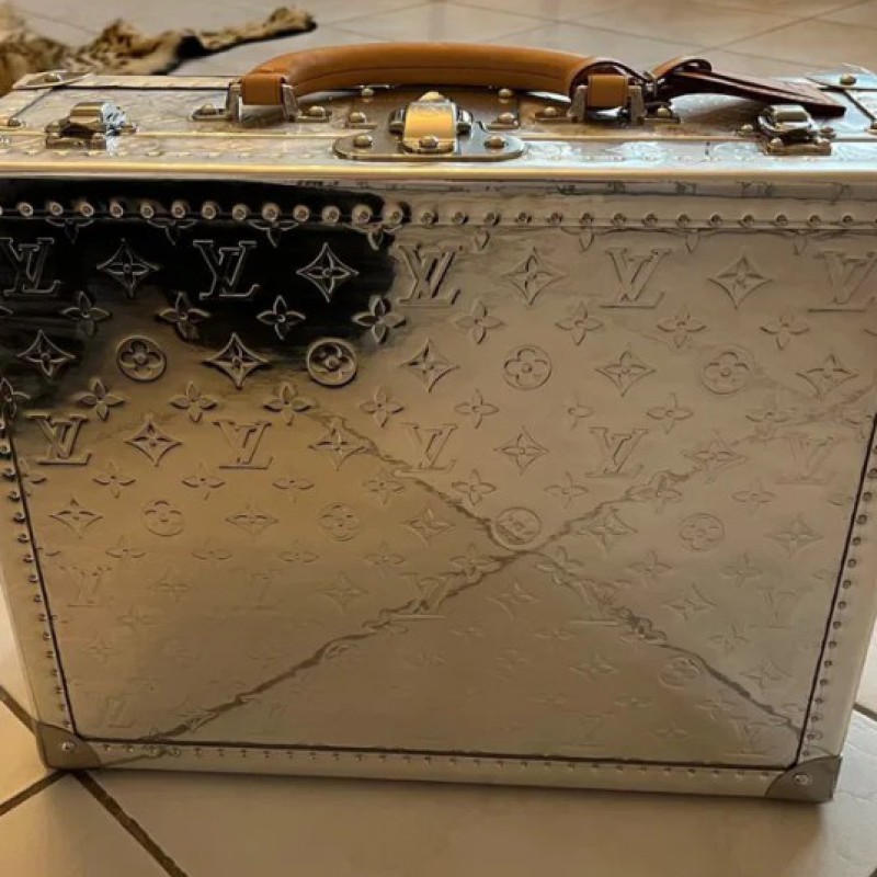 Серебристый зеркальный чемодан Louis Vuitton Vachetta Cotteville 40