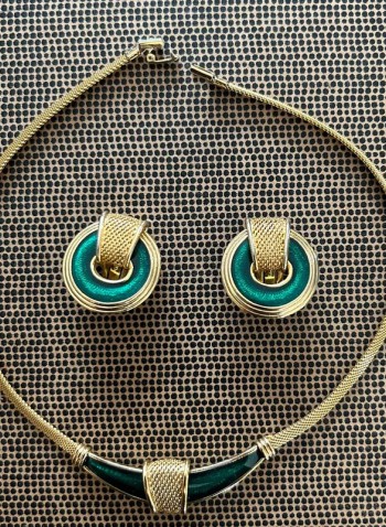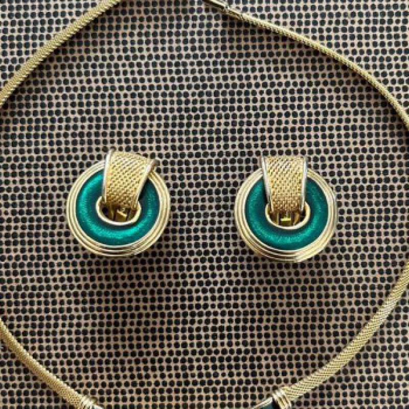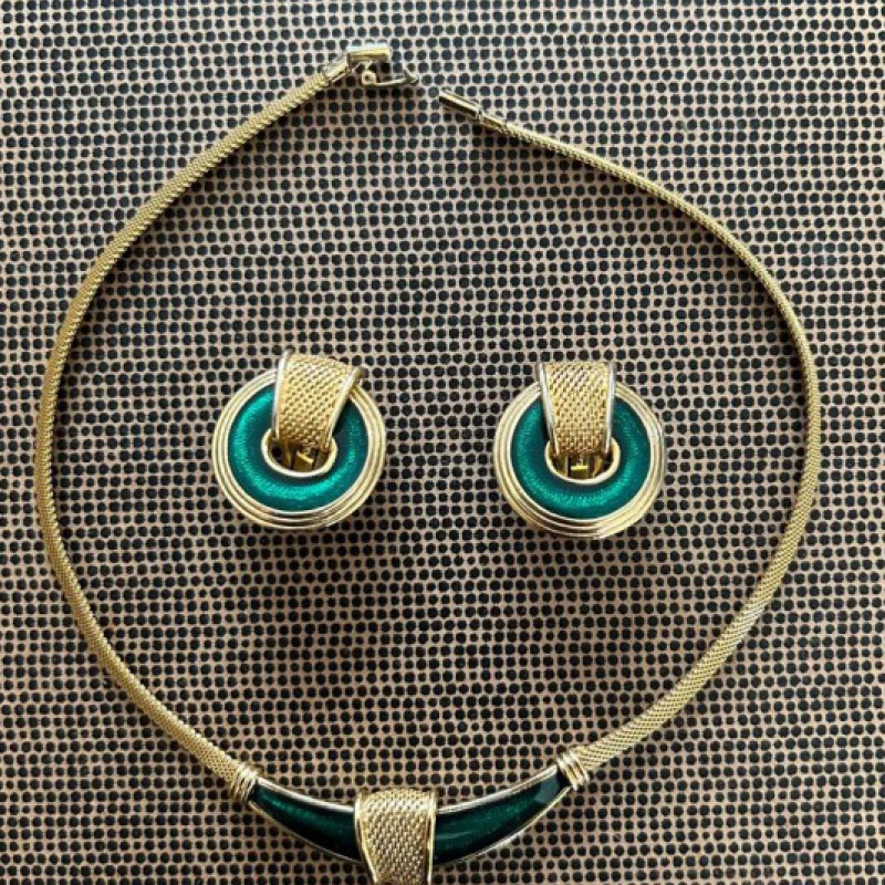 Элегантный сет украшений Orena: колье и серьги. Изготовлены из металла с эмалью, в хорошем состоянии. Стильный винтажный комплект, подходящий как для повседневного образа, так и для особых случаев.