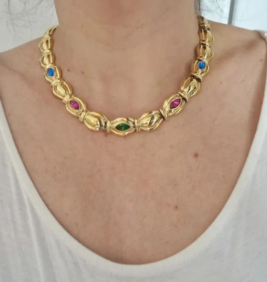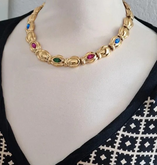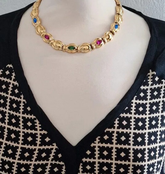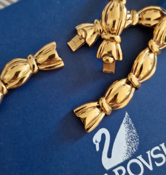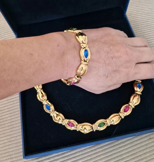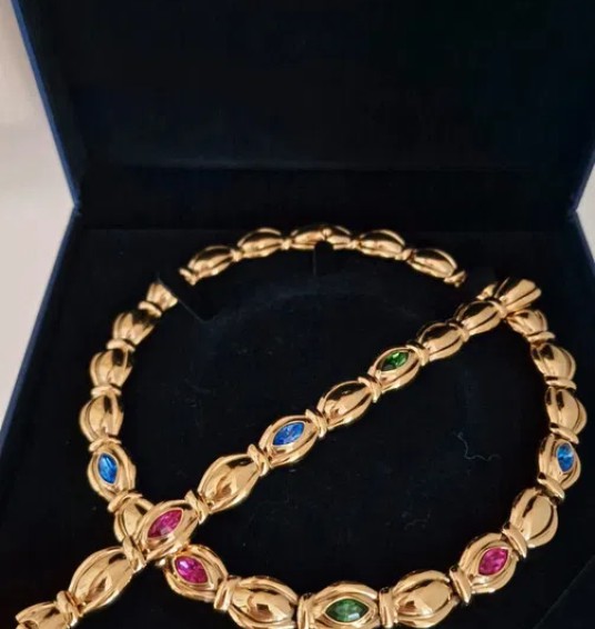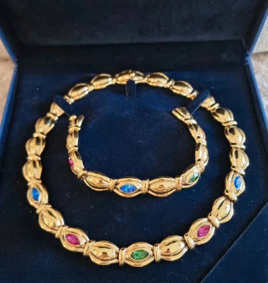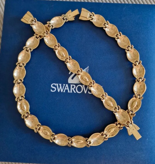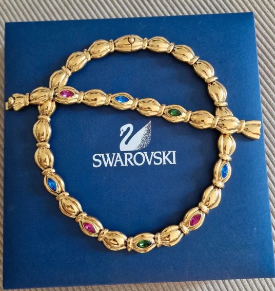 Редкое старинное украшение от Swarovski Застежка-зажим Закрытый браслет 18,5 см Ожерелье 44 см Нетронутая позолота в идеальном состоянии